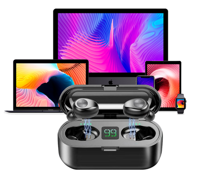 Thanks to the IPX7 Waterproof, enable you to enjoy sweat in the sun and baptism in the rain with these little Bluetooth earbuds.This IPX7 waterproof and sweat-proof design is the perfect choice for improving sports, exercise, running,jugging and gym experience. True wireless, true music, truly comfortable, truly free.